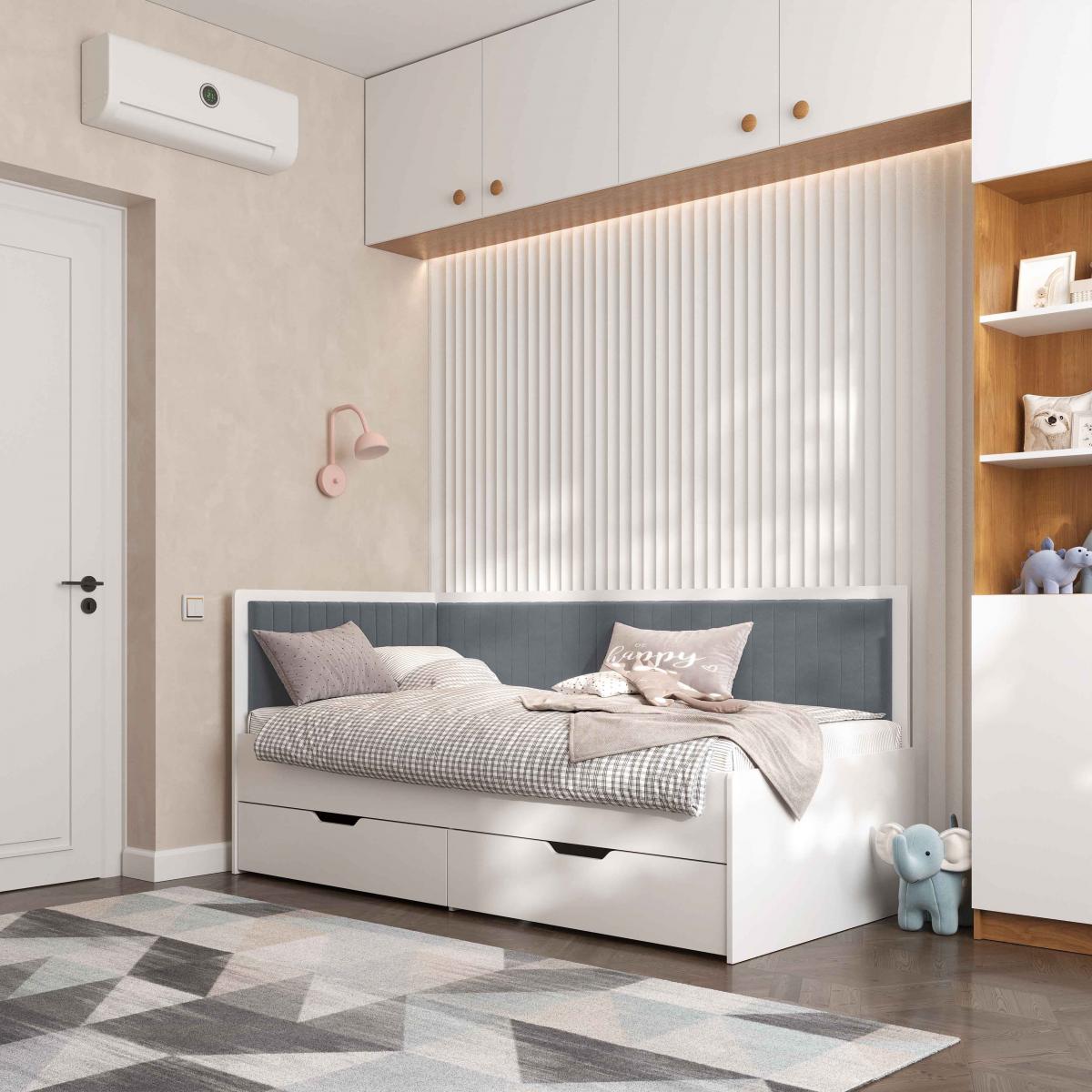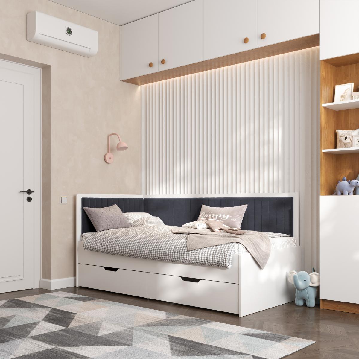 *** Доступні зразки тканини в галереї. Велюр виробника Arteks серія Lounge. Колір корпусу ліжка - білий або дуб Тахо