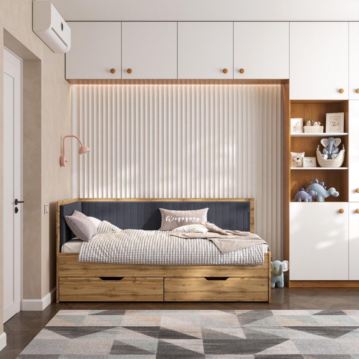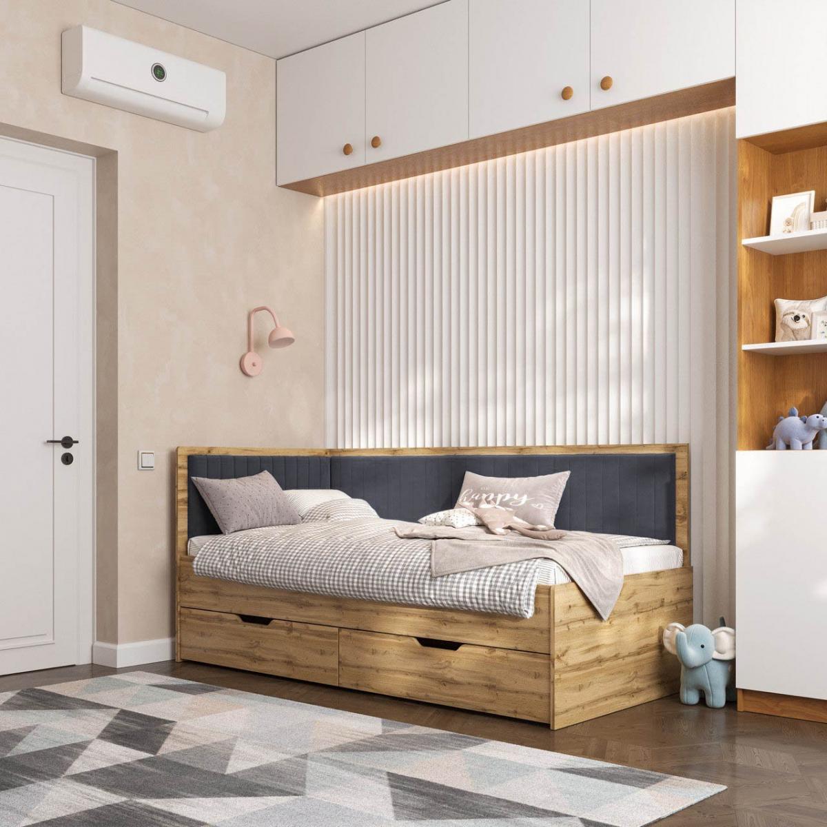В ліжку присутній ящик на виїзних колесах. Спальне місце - ортопедичні букові ламелі з кроком 50 мм.