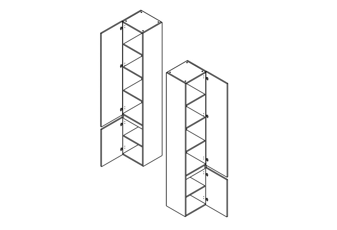 Задня стінка виконана з ДВП 3 мм сірого кольору. Двері встановлюються як з правого, так і з лівого боку. Всередині верхнього відділення розташовані три полиці, в нижньому – одна. Використовуються петлі SLIDE-ON HETTICH.