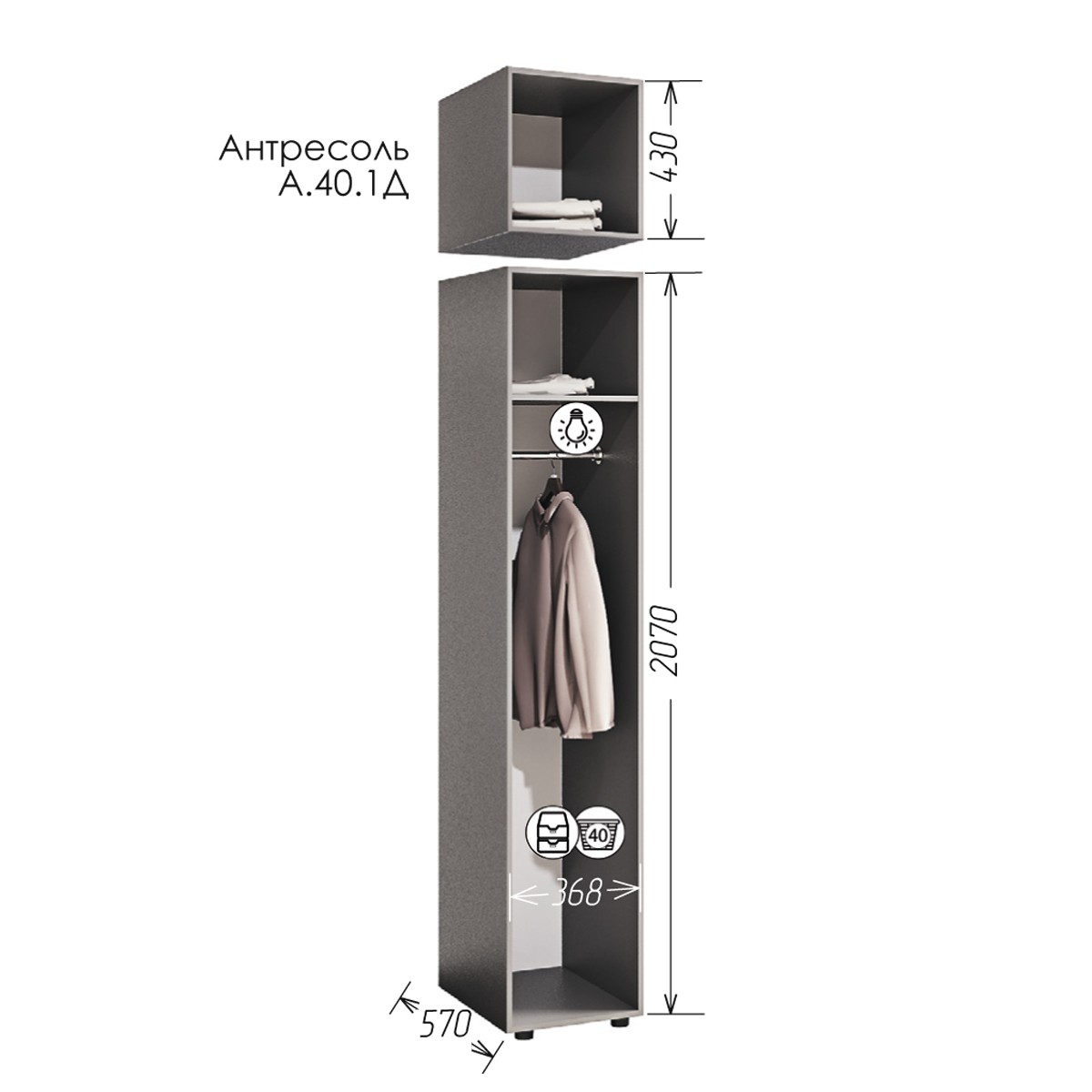 Базова вартість за розпашну шафу 40*207*57 см. Комплектація фурнітура стандарт