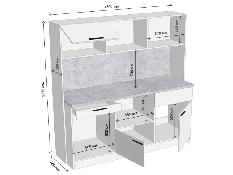 * Є можливість встановлення мийки та плити на 2 комфорки. Також є місце під витяжку, передбачено ящик для духової шафи.