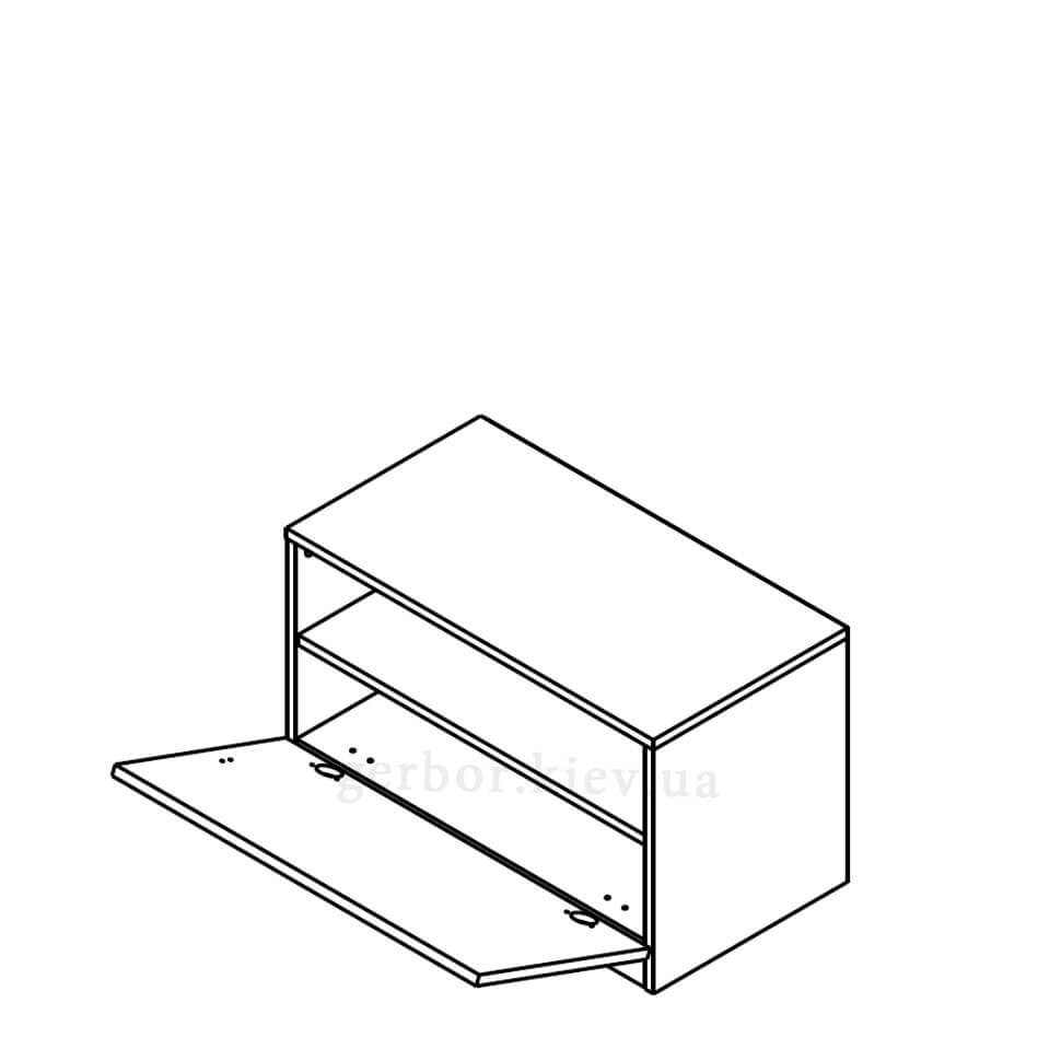 Задня стінка виконана з ДВП 3 мм кольору дуб сонома. Всередині розташована одна полиця. Використовуються навісні петлі HETTICH та система відкриття HETTICH PUSH to OPEN MAGNET легким натисканням на фасад.