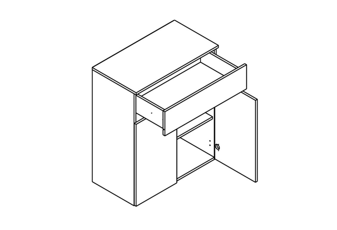 Задня стінка та дно шухляди виконані з ДВП 3 мм сірого кольору. Всередині закритого відділення розташована одна полиця. Використовуються кулькові напрямні повного висуву HAFELE та петлі SLIDE-ON HETTICH. Максимальне навантаження на стільницю становить 10 кг.