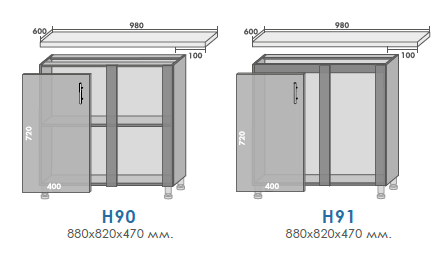 Нижние ящики (высота 820мм)