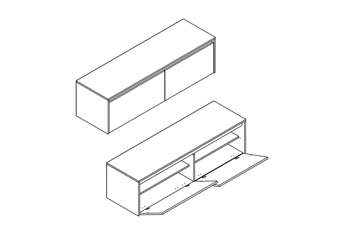 Задня стінка виконана з ДВП 3 мм сірого кольору. Усередині кожного відділення розташована одна полиця. Використовуються петлі SLIDE-ON HETTICH. Максимальне навантаження на стільницю становить 40 кг.