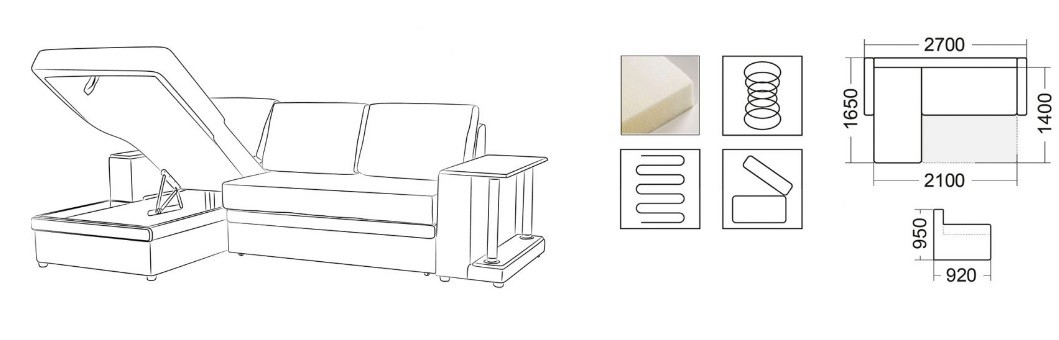 | Наполнение сиденья и спального места: | Пружинный блок + ППУ (пенополиуретан) |